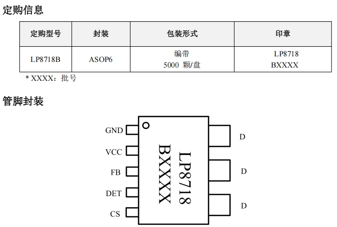 LP8718B 采用 ASOP6 封装,尺寸紧凑,适合高密度设计,能够有效节省 PCB 空间。