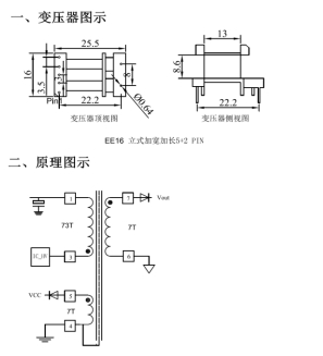 – T1 EE16:Np 73T 0.18 mm,Ns 7T × 2 (并联) 0.4 mm,Na 7T 0.18 mm