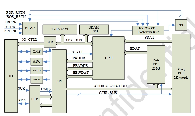 • MCU:辉芒微EEPROM型8-bit MCU,片上集成: