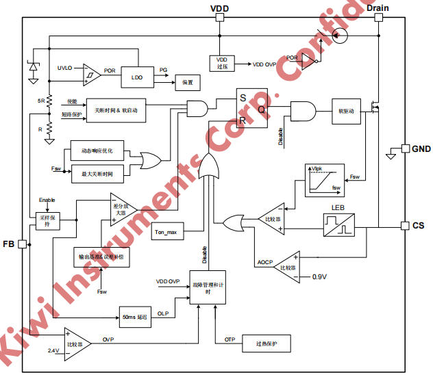 全保护:OLP、OCP、OVP、OTP、SCP、VDD 钳位,全部自恢复