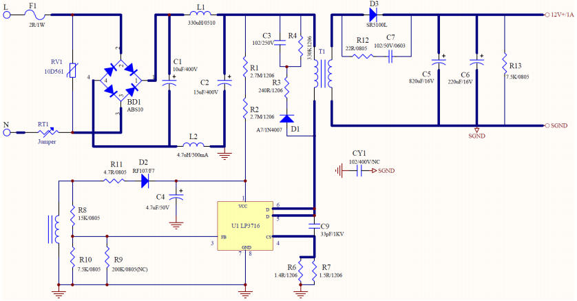 LP3716用自供电PSR架构,把高压启动、环路补偿、保护逻辑全部集成,外围仅5颗器件,单层板过EMI,83%效率,75mW待机。下次再画“小家电辅助电源”、“路由器12V适配器”、“智能插座内置电源”,直接抄这份参考设计——一颗LP3716,让反激电源设计回归“极简主义”。