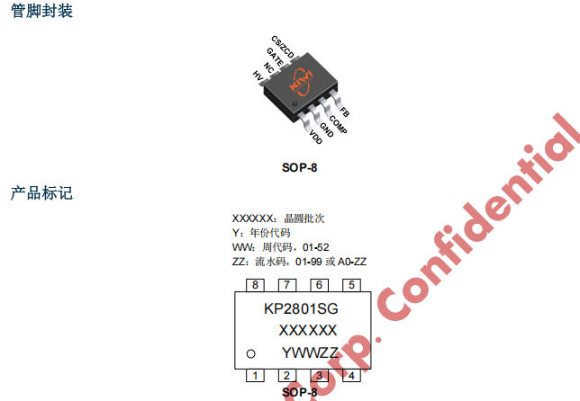 在LED驱动、USB-PD适配器、TV电源等“小体积+高功率因数”场景,传统两级PFC方案常因“元件多、体积大、调试难”被工程师诟病。必易推出的KP2801SGA,用一颗SOP-8封装就把“准谐振升压+恒压PFC+高压自供电+全套保护”打包完成: