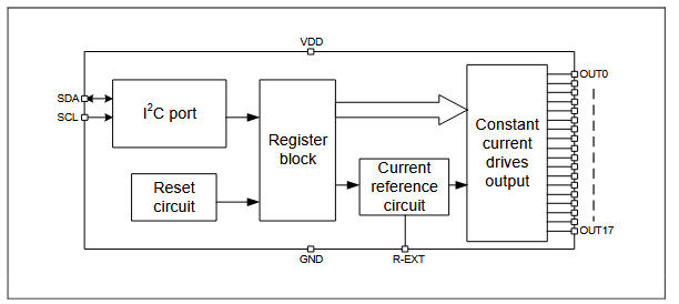 下图展现了一颗「恒流源阵列 + I²C 控制器」的架构: