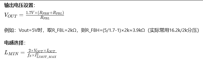 | 输出短路保护 (SCP) | FB电压 < 0.4V 持续 4ms | 进入打嗝模式 | 短路解除后自动恢复 |