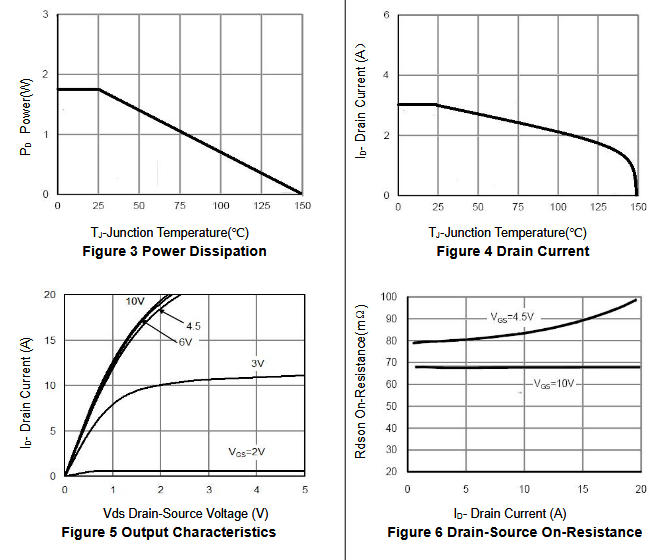 关键优势: 在VGS=4.5V逻辑电压下,RDS(ON)仅80mΩ,可直接由MCU或逻辑电路驱动,无需额外的栅极驱动电路。