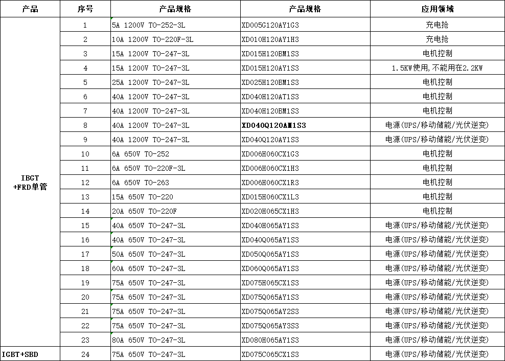 芯达茂XD040Q120AM1S3国产IBGT +FRD单管 40A 1200V TO-247-3L, 应用:电源(UPS/移动储能/光伏逆变)