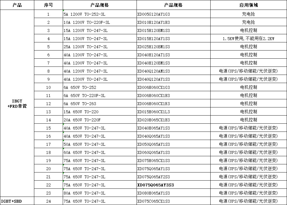 XD075Q065AY3S3 芯达茂国产IBGT +FRD单管75A 650V TO-247-3L ,应用:电源(UPS/移动储能/光伏逆变)